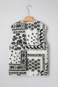 Beige Sherpa Paisley Print Pocketed Fashion Vest Jacket