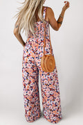 Black Floral Square Neckline Stretch High Waist Jumpsuit