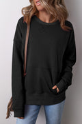 Black Kangaroo Pocket Loose Fit Drop Shoulder Sweatshirt