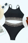 Black Leopard Print Spaghetti Strap Padded Wireless Bikini Set