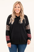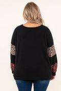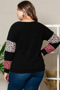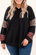 Black Plus Size Leopard Patchwork Strappy Neck Top