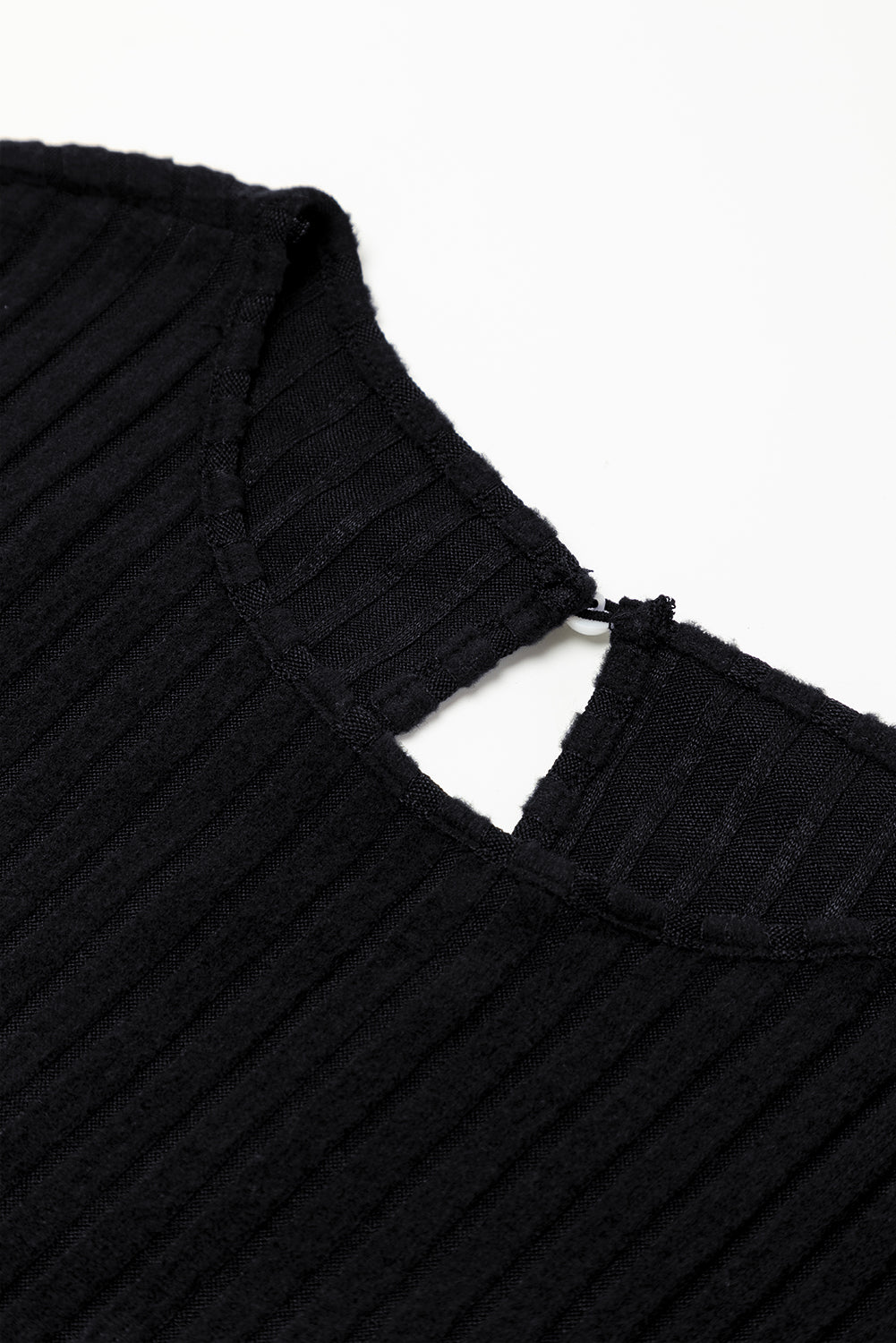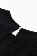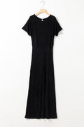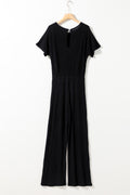 Black Ribbed Keyhole Short Sleeve Wide Leg Jumpsuit