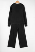 Black Textured Chest Pocket Drop Sleeve Top and Pants Set
