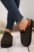 - The studded embellishments add a rebellious flair to these classic slippers, making them a versatile choice for both casual and dressy occasions.