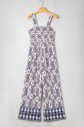 Blue Boho Geometric Print Smocked High Waist Wide Leg Jumpsuit