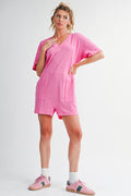 Bonbon Loose Half Sleeve V Neck Plain Romper