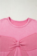Bonbon Waffle Bowknot Patchwork Mineral Wash Plus Size Top