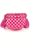 Bright Pink Checkered Print Wide Strap Large Crossbody Bag