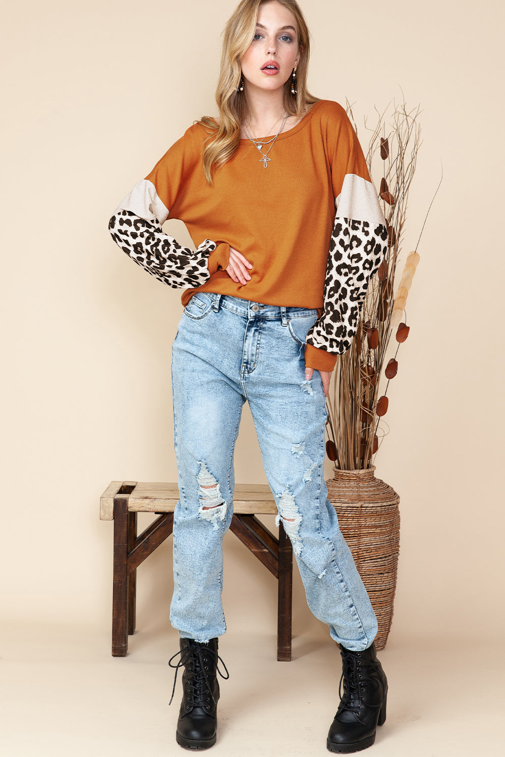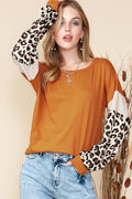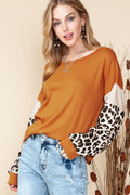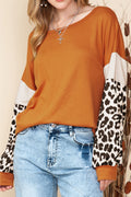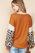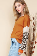 Brown Leopard and Glitter Patchwork Long Sleeve Top