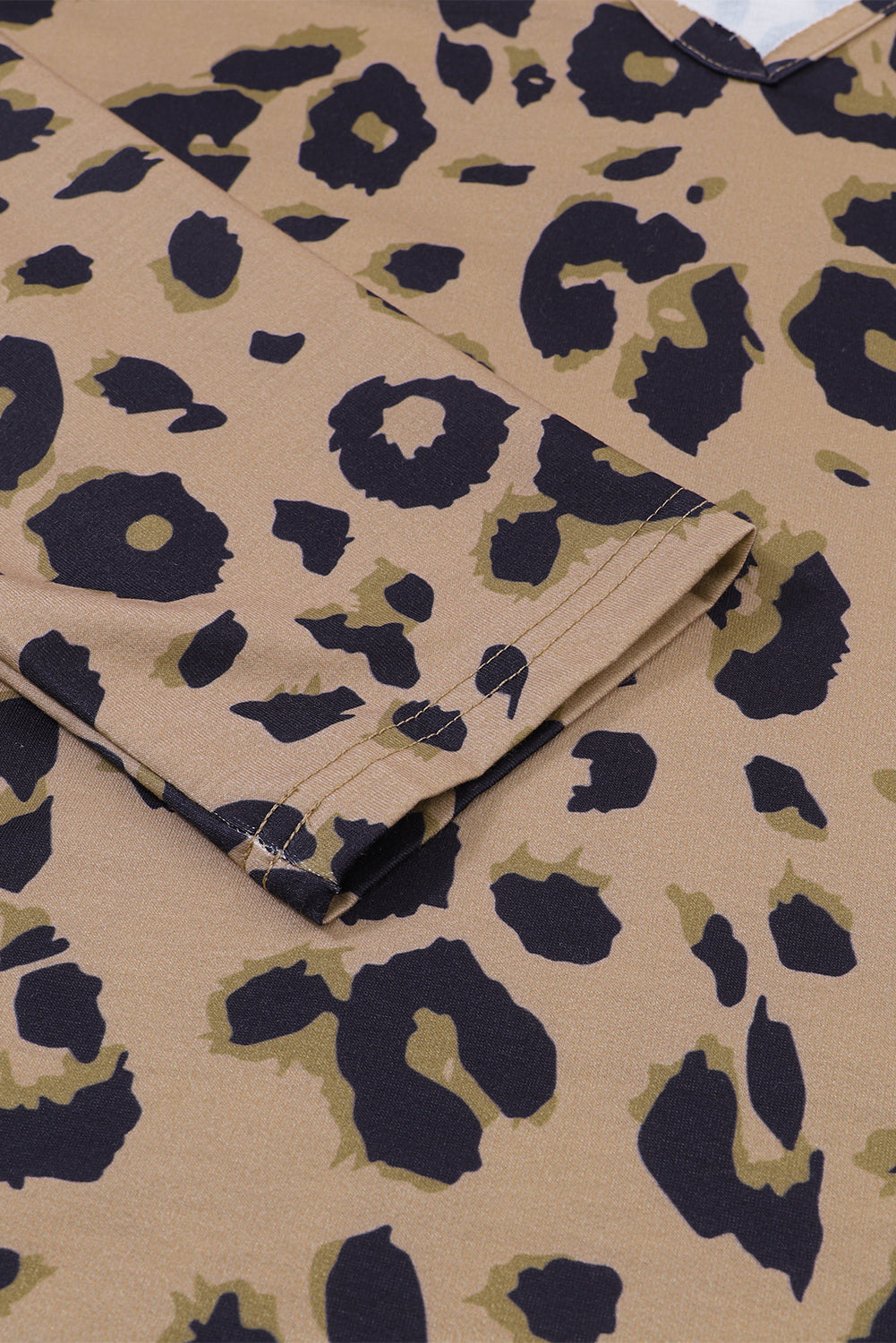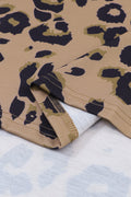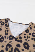 Brown Leopard Split V Neck Long Sleeve Shirt