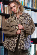 - Luxurious brown sherpa jacket with a trendy leopard print design for a fashion-forward look.