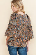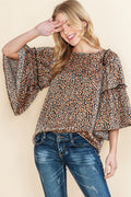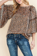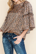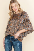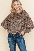 Chestnut Leopard Ruffle Flounce Sleeve Blouse