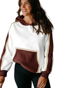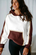Coffee Colorblock Kangaroo Pocket Long Sleeve Hoodie