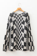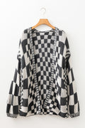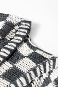 Dark Grey Colorblock Checked Loose Fit Open Front Knitted Cardigan