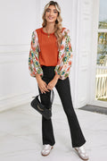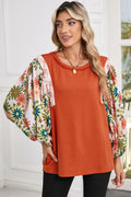 Desert Gold Floral Patchwork Sleeve Loose Top