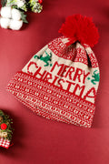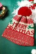 Fiery Red MERRY CHRISTMAS Winter Pom Beanie Hat