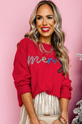 Fiery Red Tinsel Merry Letter Drop Shoulder Baggy Sweater