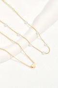 Gold 2pcs Pearl Heart Chain Necklace Set