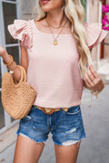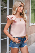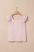 Gossamer Pink Textured Bow Frilled Ruffle Sleeve Blouse