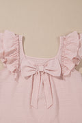 - The textured bow detail adds a playful touch to the outfit, while the frilled ruffle sleeves bring a trendy and feminine flair.