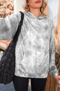 Gray Camouflage Maple Leaf Print Kangaroo Pocket Oversized Hoodie
