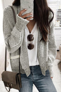 Gray Chunky Knit Pockets Drop Sleeve Cardigan