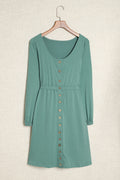 - Featuring a button-up front, this dress allows for easy dressing and adds a hint of charm to the overall ensemble.