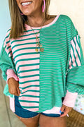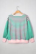 Green Stripe Colorblock Patchwork Side Slit Plus Size Sweatshirt