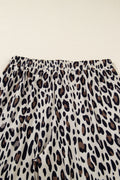 Khaki Exposed Seam Patched Pocket Plus Size Leopard Wide Leg Pants