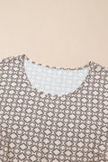 - The intricate geometric pattern adds a touch of sophistication to this blouse, making it a versatile piece that can be dressed up or down for any occasion.