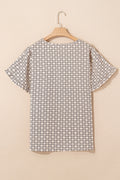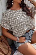 Khaki Geometric Print Frill Tulip Sleeve Plus Size Blouse