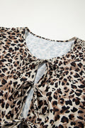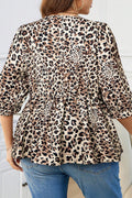 Khaki Leopard Print 3/4 Sleeve Lace-up Ruffle Plus Size Blouse