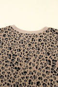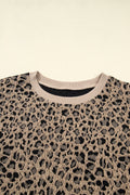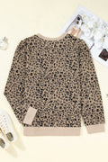 Khaki Leopard Textured Ribbed Trim Plus Size Long Sleeve Top