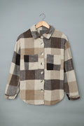 Khaki Plaid Color Block Buttoned Pocketed Shacket