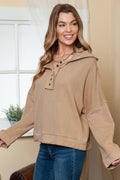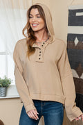 Khaki Solid Color Casual Button Seam Trim Hoodie