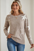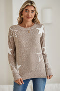 Khaki Star Pattern Drop Shoulder Knit Sweater