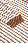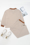 Khaki Stripe Plus Size Loose Pullover Drawstring Elastic Waist Wide Leg Pants Set