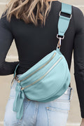 Light Blue Wide Strap Double Zipper Crossbody Bag