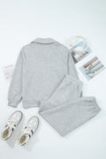 Light Grey Zip Collar Long Sleeve Top Drawstring Pants Set