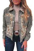 Medium Grey Ribbed Retro Floral Patchwork Jacket