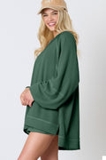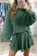 Mist Green Corded Bishop Sleeve Pullover and Ruffle Mini Skirt Set