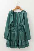 Mist Green Puff Sleeve Loose Fit Tiered Ruffle Mini Dress