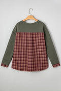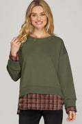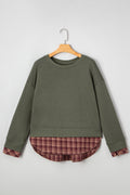 Moss Green Vintage Plaid Patchwork Drop Shoulder Sweatshirt