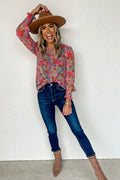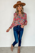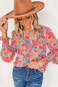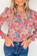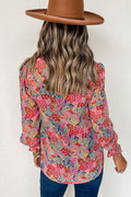 Multicolor Floral Print Smocked Cuffs Long Sleeve Blouse