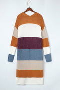 Multicolor Knitted Color Block Open Front Long Cardigan