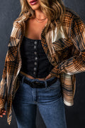 Multicolor Plaid Print Flap Pocket Button Up Shacket
