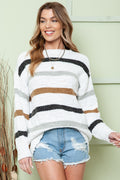 Multicolor Stripes Print Popcorn Drop Shoulder Pullover Sweater