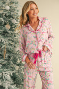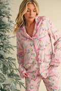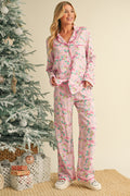 Multicolour Christmas Floral Long Sleeve Shirt and Pants Pajama Set