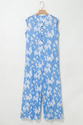 Myosotis Floral Print Sleeveless Wide Leg Jumpsuit