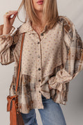 - Unique patchwork design combines floral and plaid patterns for a boho-chic look.
